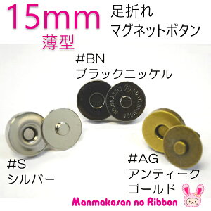 約φ15mm足折れマグネットボタン 薄型の差し込みタイプのマグネットホックです。 ■外径:約φ15mm ■入数:4ヶ(座金付) 現在ブラックニッケルは取り扱っておりません。 注 薄地の生地につける場合には、接着芯などをご使用いただくことをお勧めいたします。 (取り外しを繰り返すと生地が傷む場合があるため)