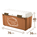 ★SHOPからのお願い★ ※設置場所のサイズを確認してからご購入下さい。 ※こちらの商品はメーカーよりお取寄せ商品となります。ご注文後のキャンセルはご遠慮下さい。 ※品質向上のため予告無く仕様を変更する場合がございます。 ※商品画像の色合いは、画像処理上 若干異なる場合がございます。予めご了承下さい。 ベランダや屋外のガーデニングに合う、ナチュラルデザインの屋外収納用品です。 スタック付でMとSを重ねて収納でき、天板耐荷重が80kgなので腰かけながら作業できます! 品名 バルコニーガーデン ストッカーM カラー ダークオレンジ 最大外寸(約) 幅76×奥行36×高さ40cm 有効内寸(約) 幅67×奥行26.5×高さ35.5cm 容量 63リットル 材質 【本体・フタ・ロック】ポリプロピレン 備考 天板耐荷重80kg 製造 日本製 発売元 天馬株式会社 キーワード:ベランダストッカー 屋外ストッカー ベンチ型収納庫 ベンチ型ストッカー ガーデンストッカー ベランダ収納庫